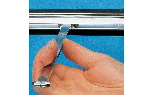 Mit dem Kederdorn bringt man verbogene Kederleisten wieder in Form. Dorn mit der entsprechenden Stärke (an jedem Ende andere Stärke 7 und 9 mm) einführen und mit leichten Schlägen mittels Campinghammer durch die Kederleiste hämmern.