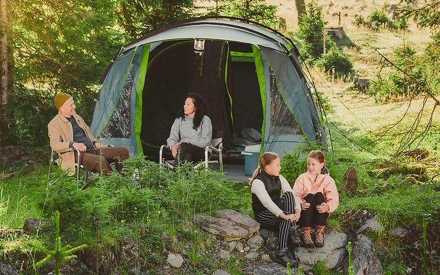 Das Vail 6 ist ein Familienzelt mit Tunnelstruktur, das einfach aufzubauen ist und der ganzen Familie ein komfortables und großzügiges Zuhause auf dem Campingplatz bietet.