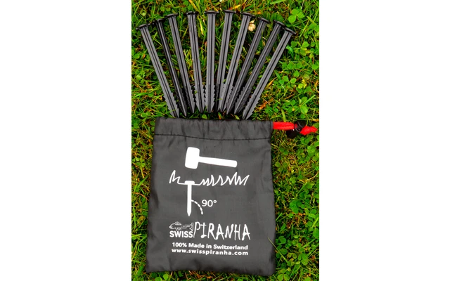 Der SwissPiranha BF120 eignet sich für harte wie auch weiche Böden und kann für kleine und mittelgroße Zelte, Tarps, Picknickdecken, Abdeckfolien, etc. verwendet werden.